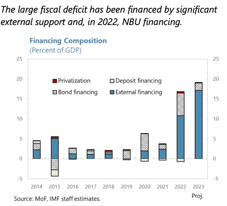 Back in Chartbook 205 I focused on the struggle that ensued between the government and Ukraine’s central bank in the autumn of 2022. The success of stabilization consists in having stopped this doom-loop. The authorities are no longer using monetary financing and are committed in their discussions with the IMF to refraining from it in future. The quid pro quo is a large flow of foreign financing.