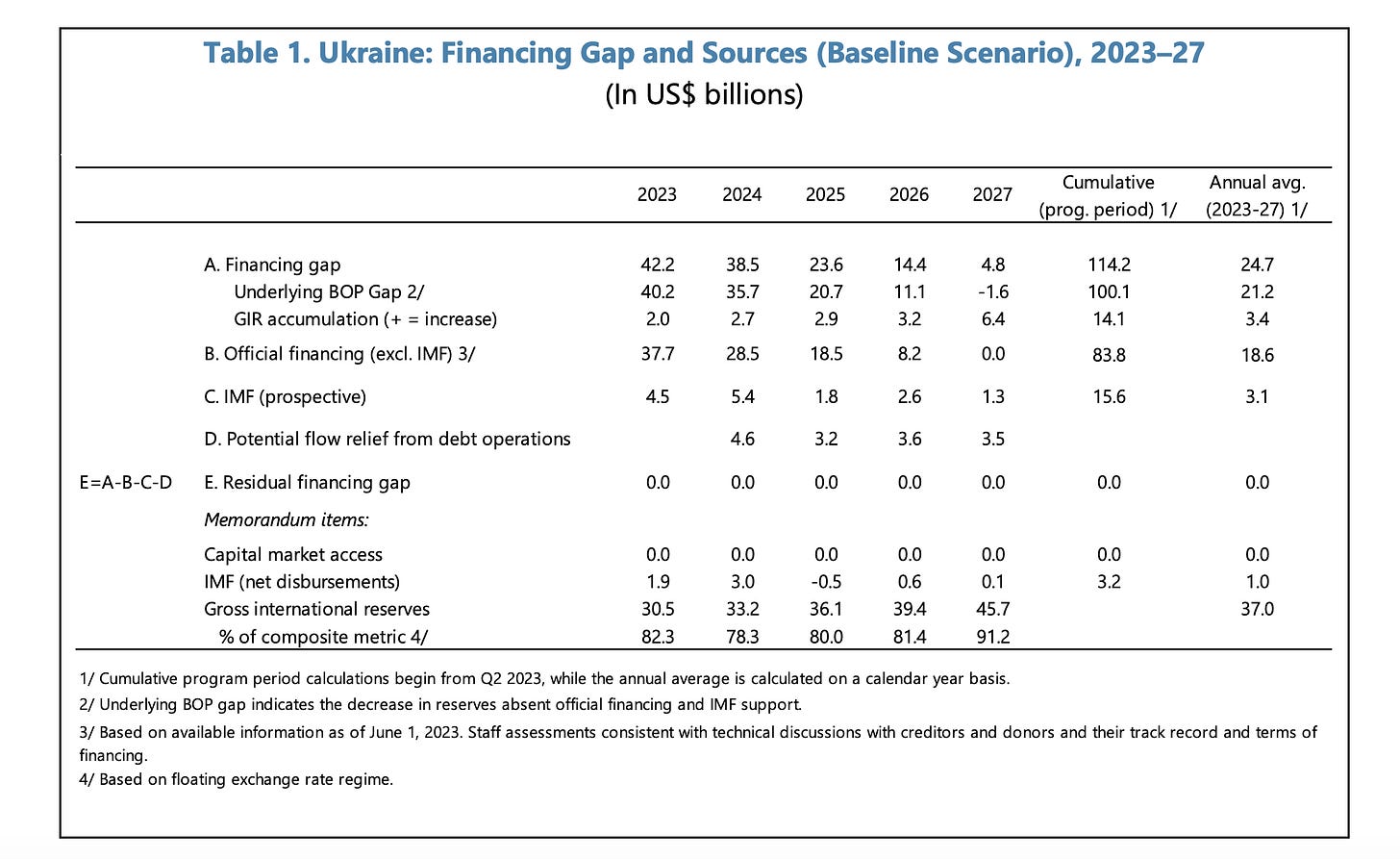 “Concessional financing from international partners and donors is expected to form the majority of net borrowing for financing the 2023 deficit (net external financing of US$29.7 billion out of the total net general government financing of US$33.1 billion) and the remainder of the program period. Domestic bond financing is expected to meet a smaller share of financing needs (net bond financing of US$3.4 billion for 2023); no monetary financing is envisaged … The authorities remain committed to avoiding monetary financing of the budget. No monetary financing is expected under the baseline (Indicative Target). As a contingency, such as due to a shortfall in external financing or unexpected financing needs, monetary financing is expected to be used only after all other options have been exhausted, and in limited amounts. In line with the recommendations of the 2023 Update Safeguards Assessment, the NBU and MoF are working on a framework for monetary financing, to be in place by end-July, that will specify the key triggers and terms for accessing monetary financing, as well as the conditions for using different types of such financing (e.g., bonds, short-term advances). Together with more frequent coordination on fiscal financing needs, this framework should help limit ad hoc requests and mitigate the risks of excessive monetary financing.”
