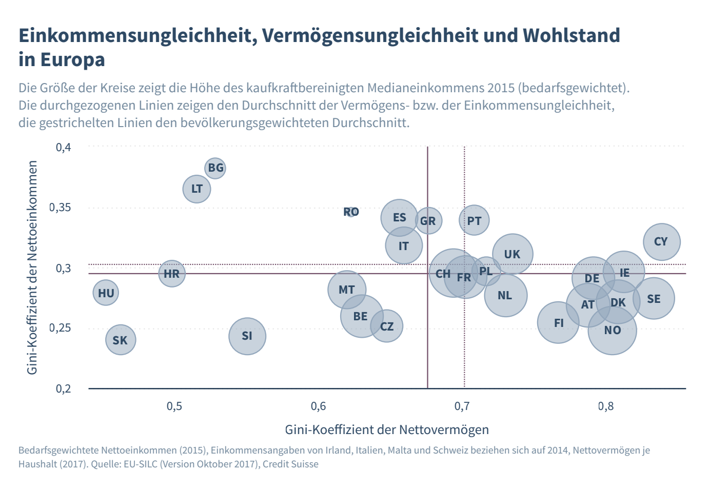 As data from the IW research center in Cologne confirm, Germany’s social market economy, like the social democracies of Scandinavia, earns its sobriquet of “social” by providing a significant amount of income equalization (vertical axis above). But that redistributive side, shields an underlying wealth inequality, which is massive (horizontal axis). If the data are to be believed, German wealth-holding by the 2010s was more concentrated than in any other large European society. In terms of their wealth-ginis France and Italy are closer to former communist Czechia than they are to Germany. In terms of gini coefficient, Germany’s wealth inequality at 0.79 is closer to that of the USA (wealth gini 0.81-0.86), than to countries you might think of as being its European peers.