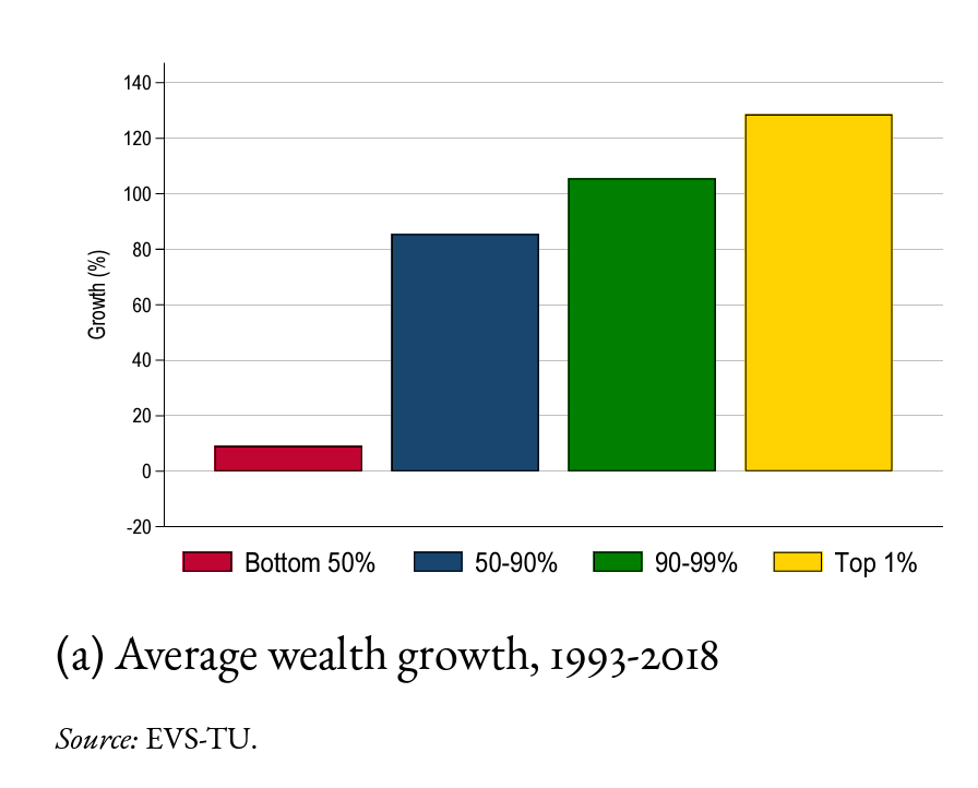 Since the early 1990s Germany has seen a highly unbalance surge in top-1-percent wealth.