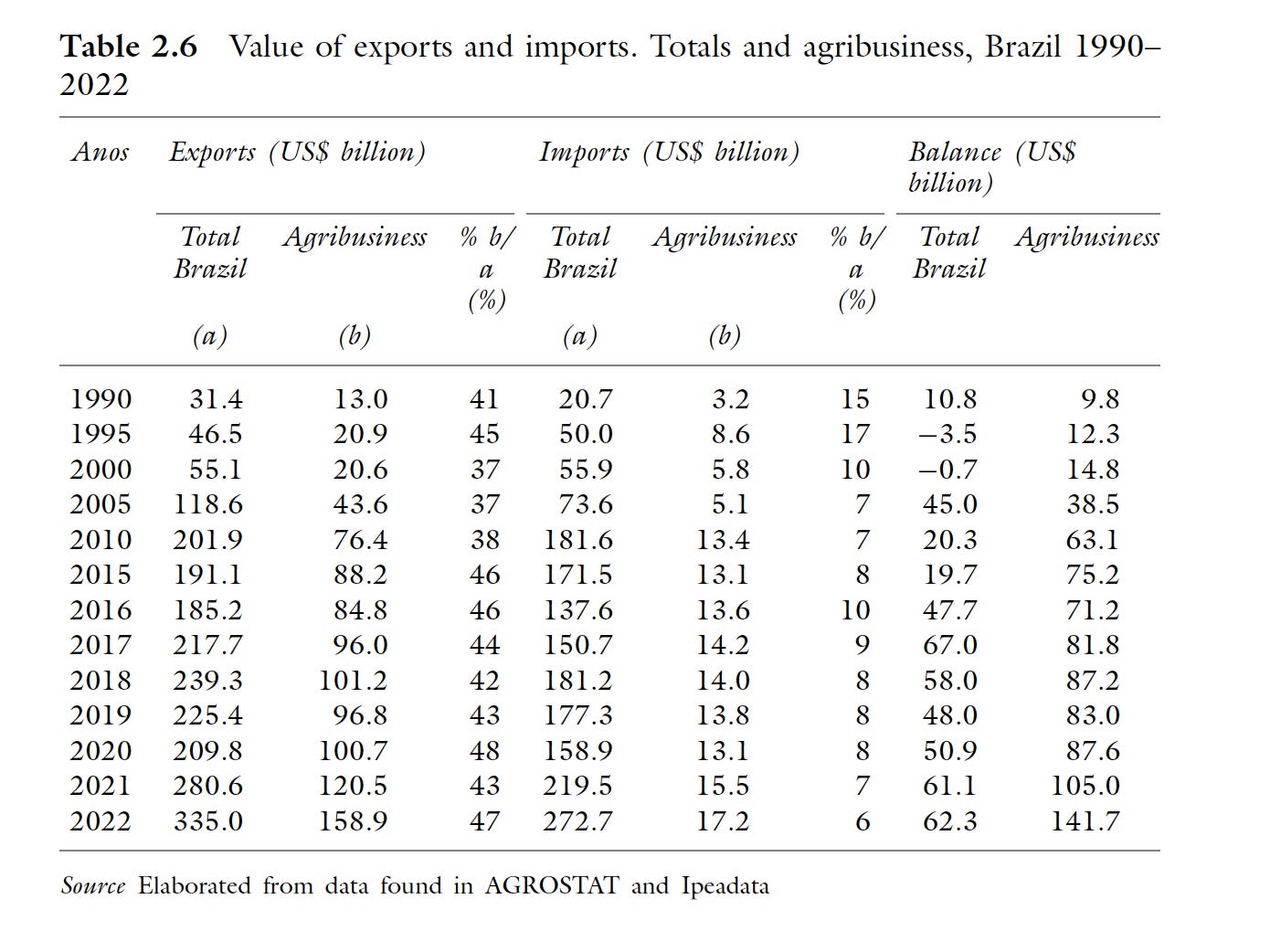 Source: Herbert S. Klein, Francisco Vidal Luna, Brazilian Crops in the Global Market. The Emergence of Brazil as a World Agribusiness Exporter Since 1950 (2023)