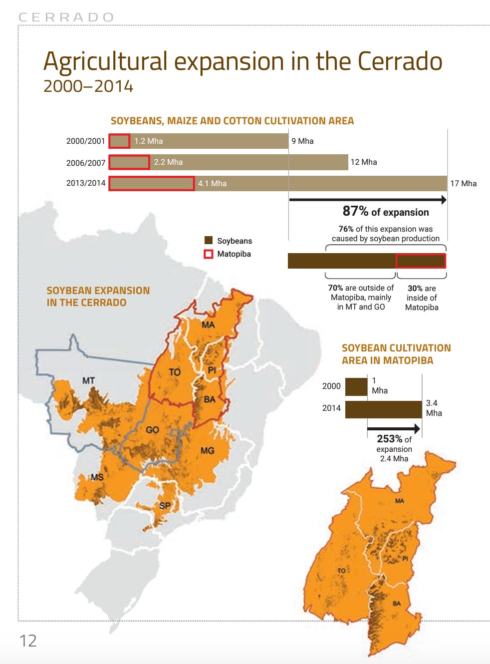 2. The expansion of soybeans and maize has indeed been concentrated in the cerrado/savannah but already involves the Amazon. The northern section of the centre-west region is the Amazon biome.