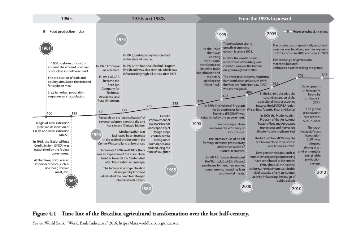 Up top, let me put this timeline from Albert Fishlow and José Eustáquio Ribeiro Vieira Filho Agriculture and Industry in Brazil. Innovation and Competitiveness (2020).