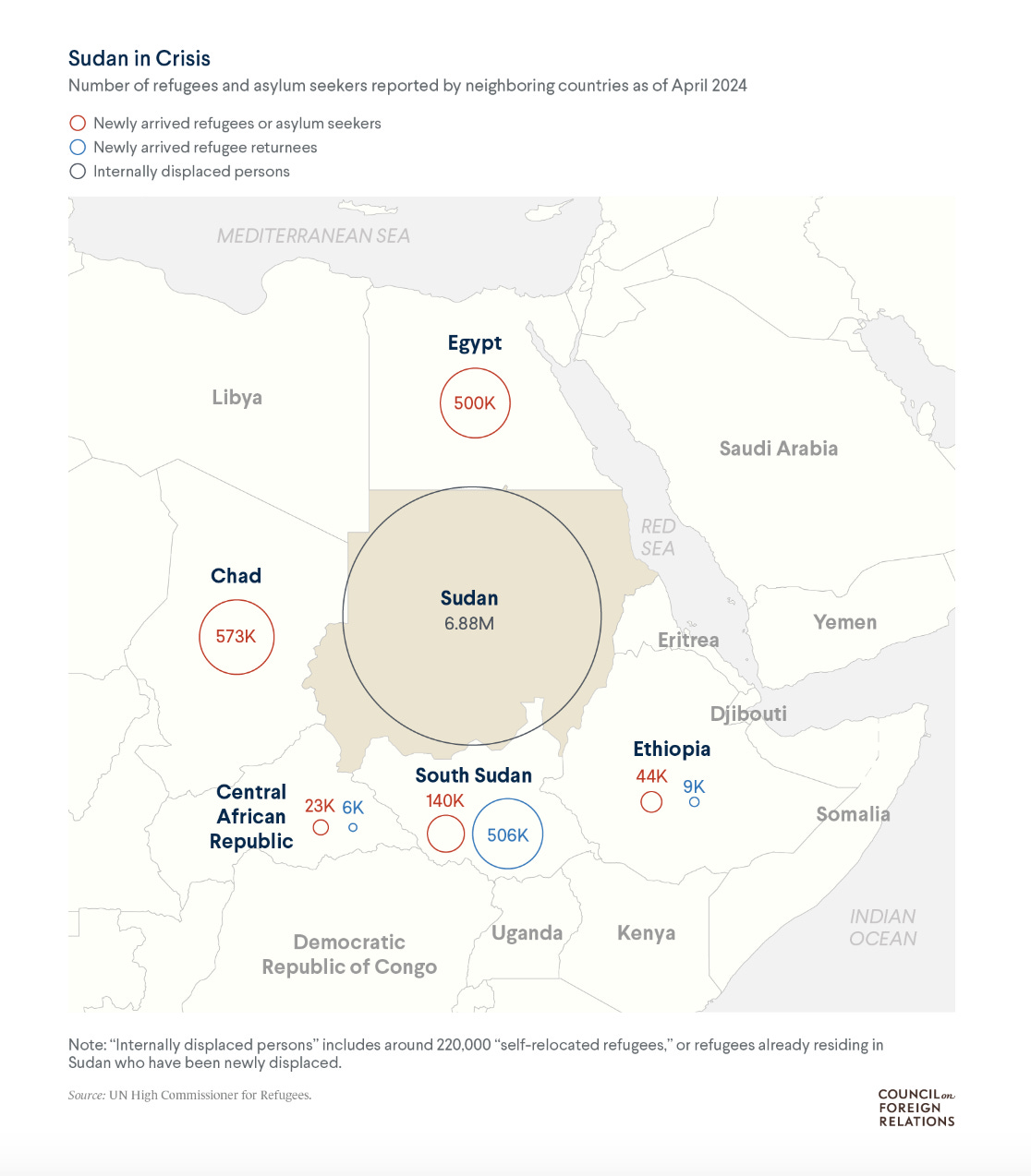 One way to think of the interconnections is to think of flows of people - fighters, workers and refugees - moving across borders. The huge crisis of displacement in Sudan is spilling over to the entire region. In April 2023 5.4 million people were counted as displaced. Today the figure is 8.6 million.