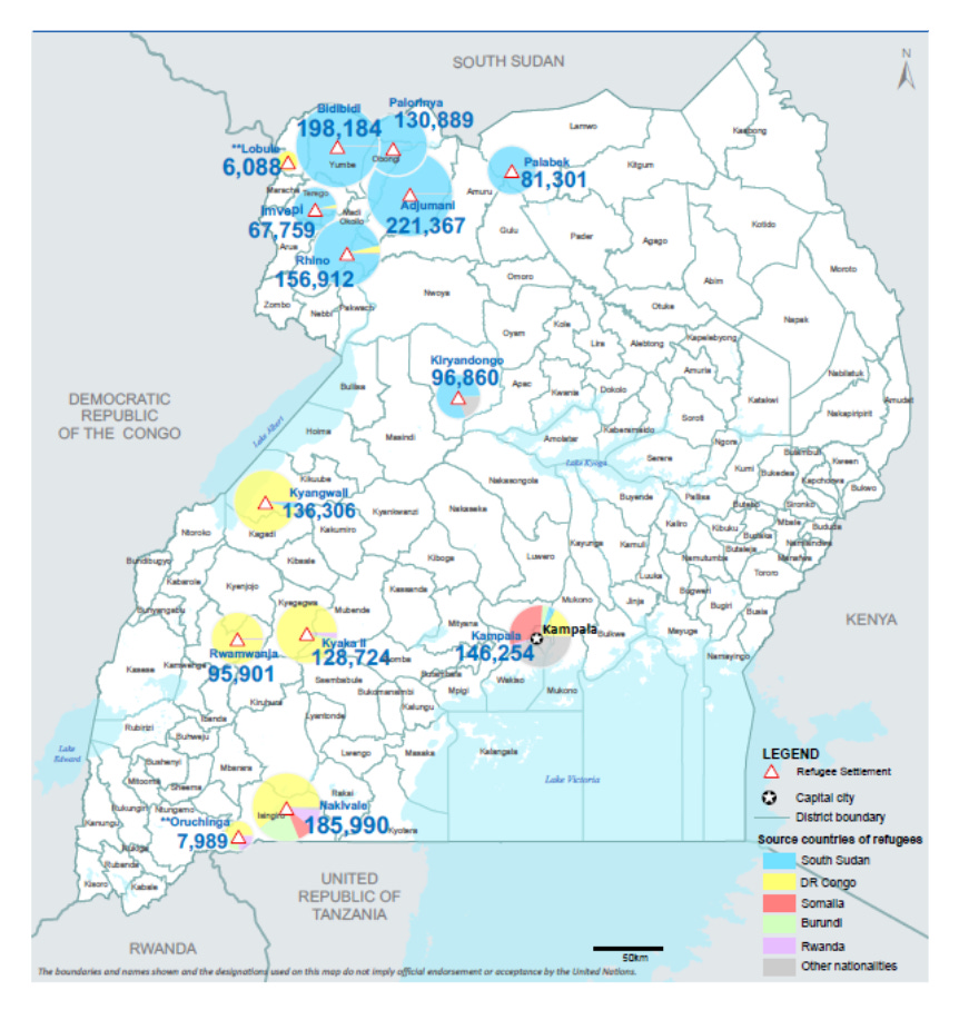 Any mapping is by necessity incomplete and finding those limits prompts further investigation. The useful CFR map above centers the Sudan refugee crisis. This has the effect of placing Uganda outside the frame and suggesting that it is unaffected by the crises of the region. What this obscures is that Uganda borders DRC to the East and South Sudan to the North and is itself a vertex of distress and displacement. Uganda, which ranks 161 out of 191 countries in terms of HDI, is currently struggling to host 1.6 million displaced people - 935k from South Sudan and over 500k from DRC.