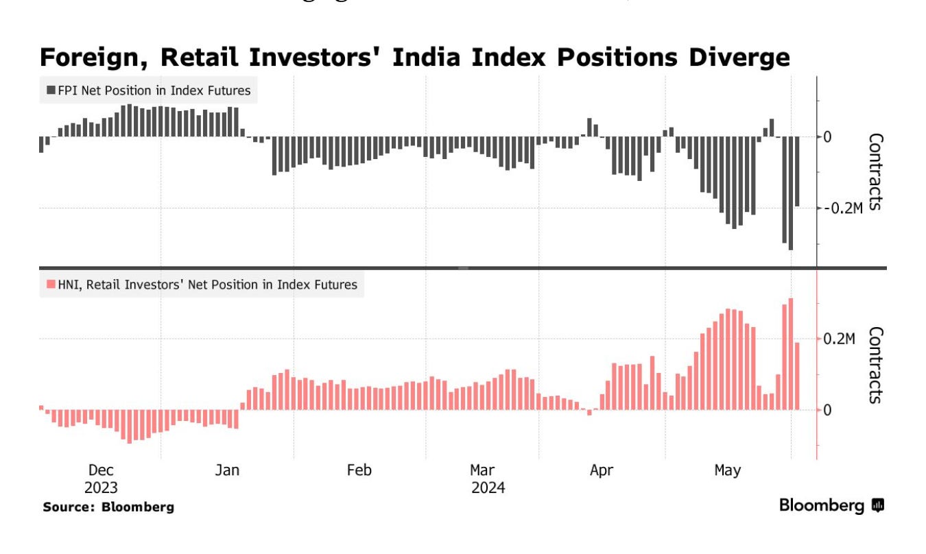 Ahead of the election locals were long Indian stocks, foreigners were short.