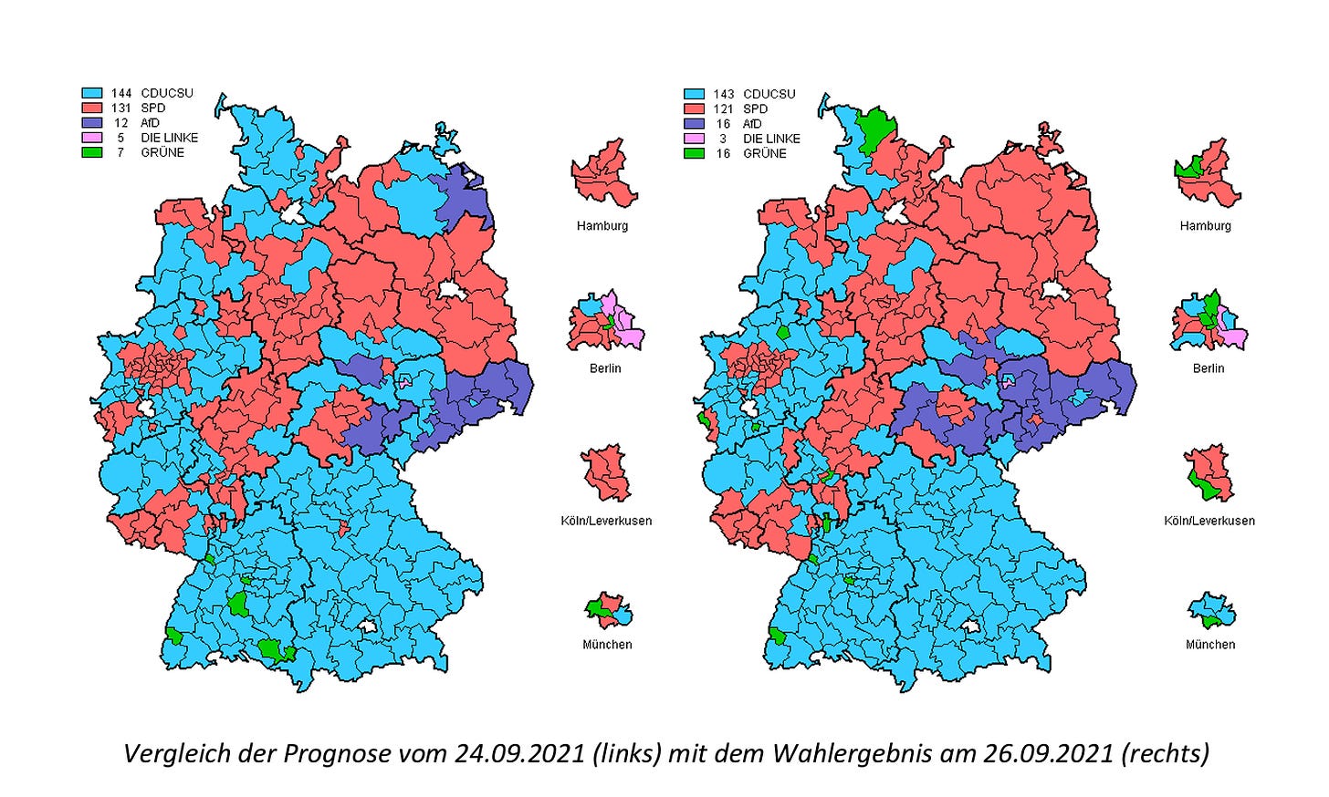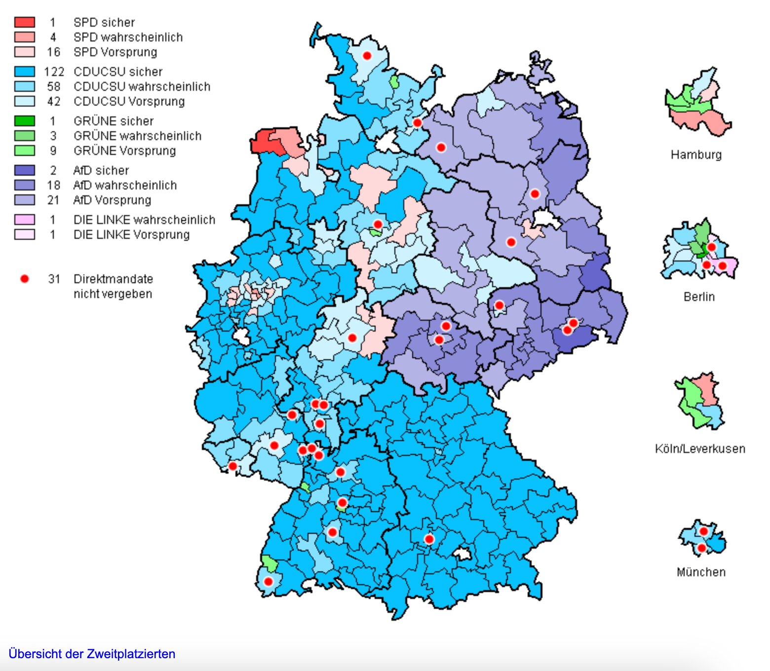 If Germany operated a first past the post system, the CDU would sweep most of the West of Germany and the AfD would take the entire East of the country.