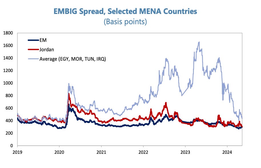 As global EM have recovered from the shock of Fed tightening, MENA is an exception. Since 2023 the region has continued to suffer capital flight and Lebanon, Pakistan and Tunisia remain in serious financial distress.