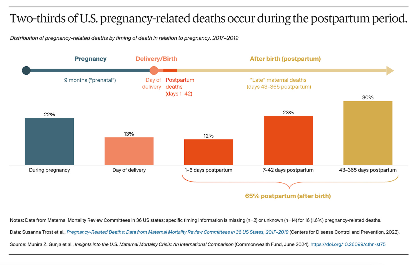 A striking feature of US maternal mortality is that two thirds of maternal deaths occur postpartum.