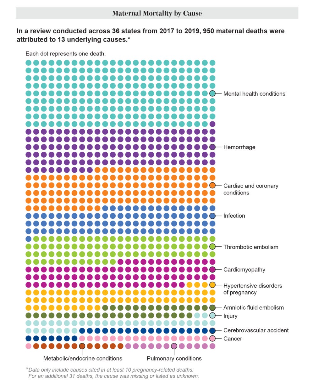 Especially amongst white women a large share of mortality occurs after giving birth and is related to mental health issues.
