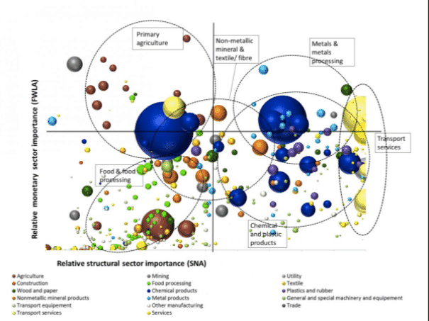 Clearly, a sectoral approach has a likeness to the kind of work people do with the concept of commodity-chains. Those studies are incredibly rich but being rooted in the materiality of a specific commodity, they are even more specific than the treatment of sectors I am suggesting. As a result we tend to move from the very specific to the very general in sometimes rather unmediated ways e.g. cotton and the history of capitalism …. and back again. Obviously, I have no problem with the general direction of travel in that kind of work. Commodity chain analyses derive their coherence from a series of backward and forward linkages around the production and distribution of a specific commodity. The “thingness”, that they evoke, is part of their charm – cotton, sugar, the Sony Walkman etc. But I want to explore what happens if you put an extra layer or two of mediation in there. A sectoral approach allows us to emphasize plurality and materiality and the technological too, but at a slightly higher level of generality.