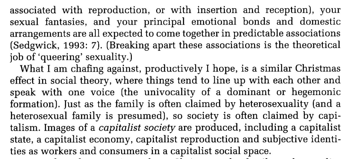 Gibson-Graham illustrate this with regard to Kosofsky Sedgwick’s so-called ‘Christmas effect”.