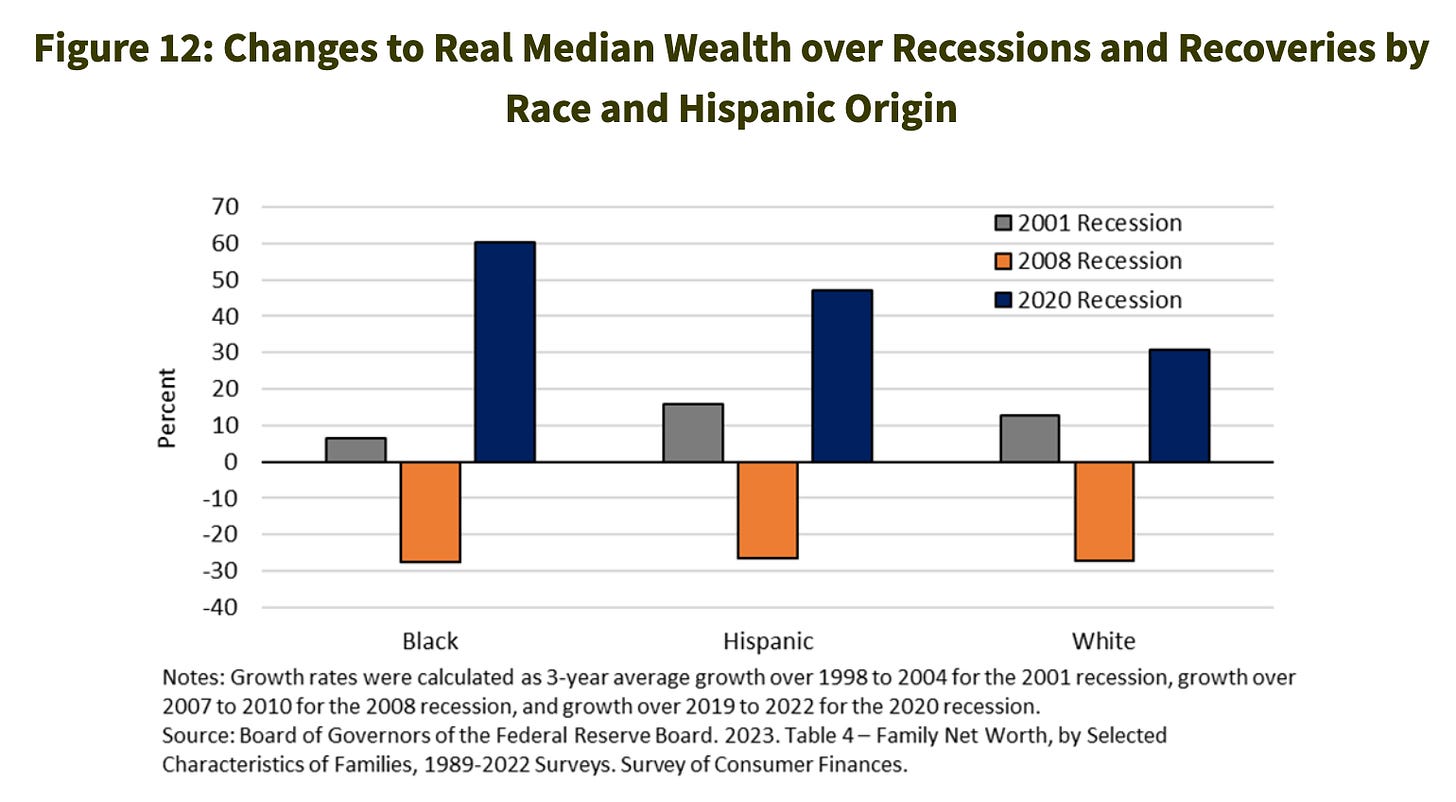 Comparing this recovery to past ones further underscores the strength of our expansion. While the COVID recession entailed the largest spike in unemployment in living memory, the U.S. unemployment rate declined to its pre-pandemic level in just two years. This contrasts significantly with longer than four years in the 1990, 2001, and 2008 recessions.[18] The historic 37 percent increase in real median household wealth from 2019 to 2022 also stands in marked contrast to the 2007 to 2010 period, when real median household wealth instead fell by 39 percent.[19] And business investment fell less and recovered faster as a share of GDP than in prior recessions, with businesses investing an estimated $625 billion more during this expansion than if investment had followed historical patterns.[20] This historically impressive investment performance reflects domestic and foreign investors’ confidence in the stability and productivity of our economy.