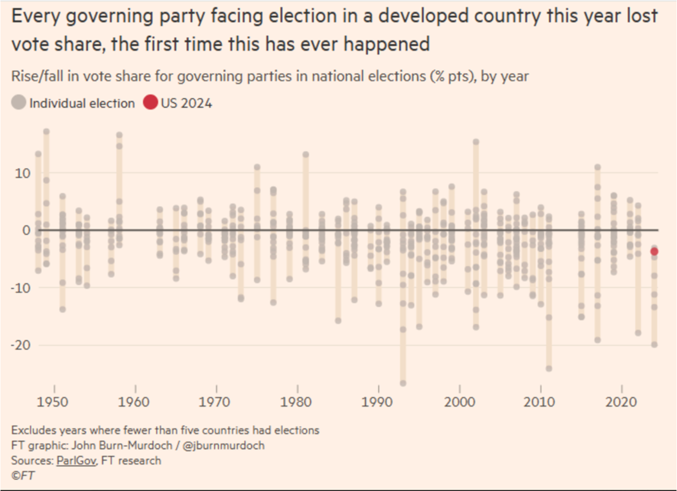 When we consider the extraordinary weakness of Biden as a candidate, one might reverse the question and ask whether the remarkable track record of economic policy over the last four year, in fact, helps to explain why the Democrats did so much better than virtually every other governing party.