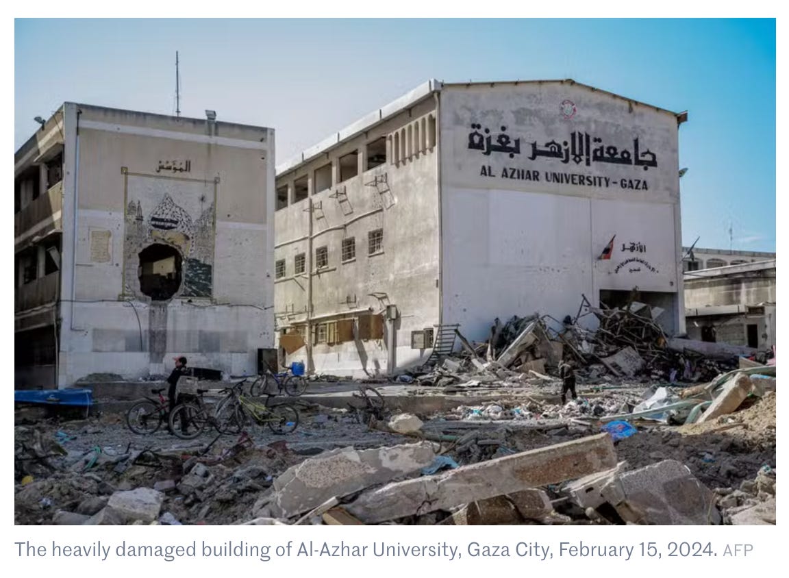 Can't thank you enough for this article. Scholasticide deprives future generations of their culture, and sense of who they are. But that was the objective in Gaza.