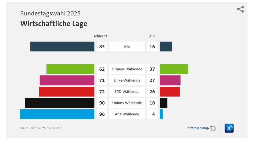 If we use the AfD’s electorate as our barometer, it is true that they are very pessimistic about Germany’s economic situation.