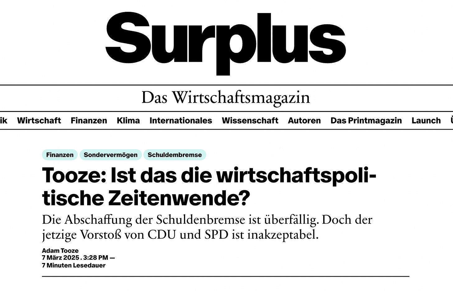 Overcoming the debt brake is a historical necessity. If the CDU-SPD deal does anything, it makes clear that even Merz and Söder know this. To respond to genuine historical challenges, it is long overdue that German democracy should free itself from self-imposed immaturity (selbstverschuldete unmuendigkeit). But this should not start by subverting democracy through a last minute back door maneuver that does an end run around the outcome of the election held as recently as February 23 in which a historic share of the German electorate went to the polls. What is required is a general revision of the debt brake on the basis of the majority in the new Bundestag which is clearly available if the CDU and SPD are willing to compromise rather than to ramrod their priorities through the technocratic back door.
