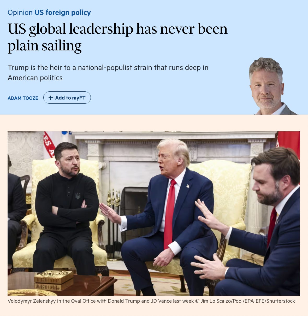 My view of US history is not just janus-faced, but developmental. To locate Trump we need to offer a historical account of how we got here, an account that is path-dependent and means that Trump is not just a shock but indicative of a deeper and longer-term trend. You don’t have to start your story-telling “at the beginning”. We all think and speak in “medias res”. But if you don’t see that the coalition that supported US globalism in its liberal variant has collapsed and that that didn’t start in 2024 or in 2016, you are missing the point.