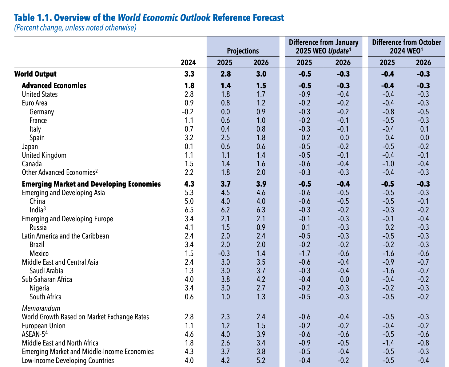 Numbers like this can be debated. Large regional aggregations bury the differences between dynamism of Spain and the sluggishness of Germany, for instance. I expect there are many folks out there who would like to see India broken out separately. But these data give us a plausible general picture of the world economy at the start of 2025.