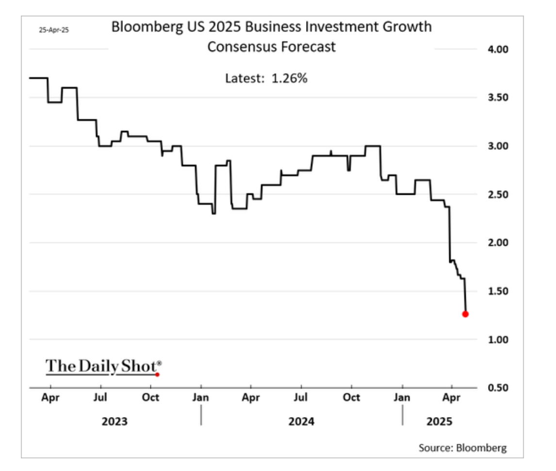 Ultimately, the crucial variable in the US is domestic demand. How will consumption and investment hold up? Since the start of the year, forecasts for investment growth in the US have been slashed by more than half.