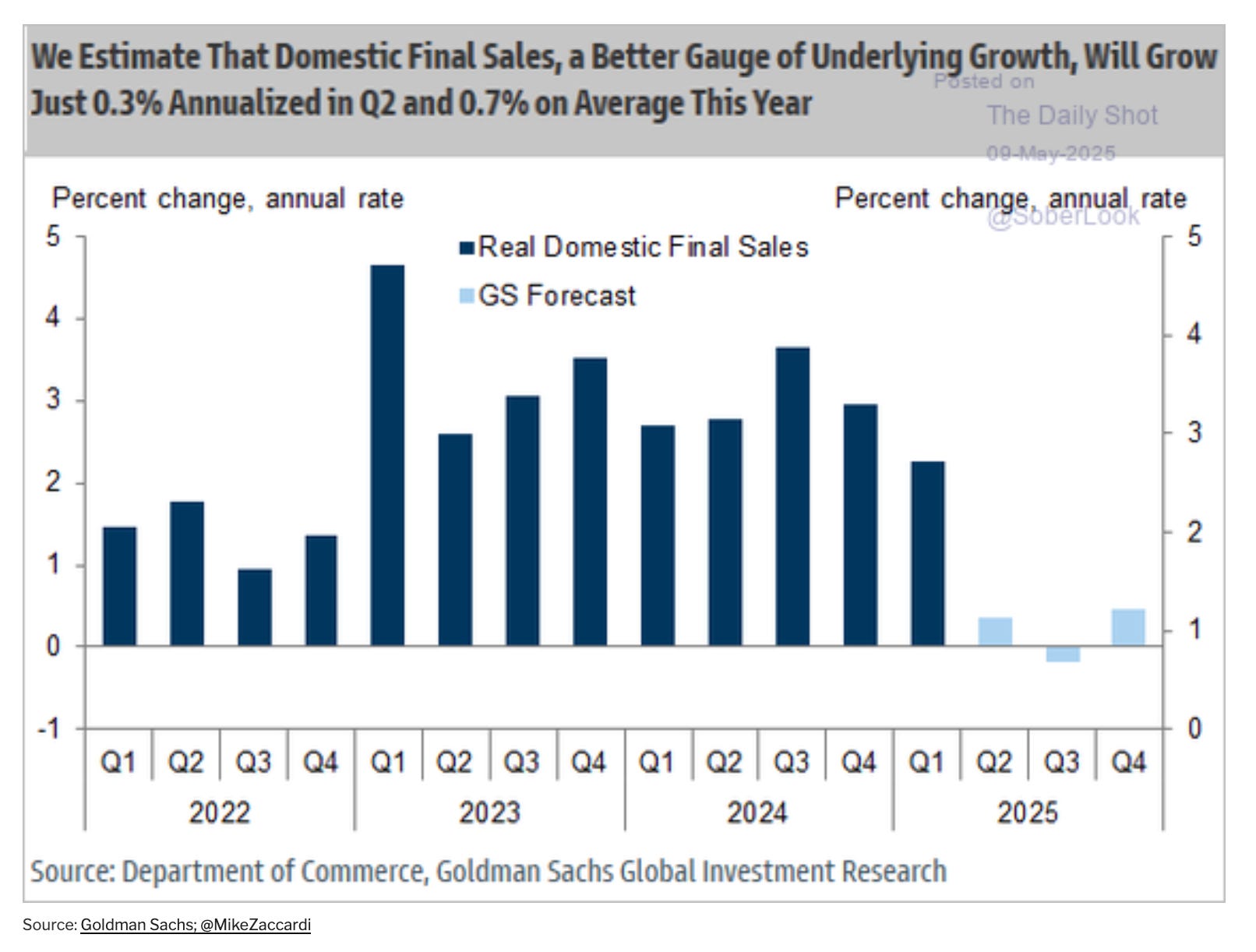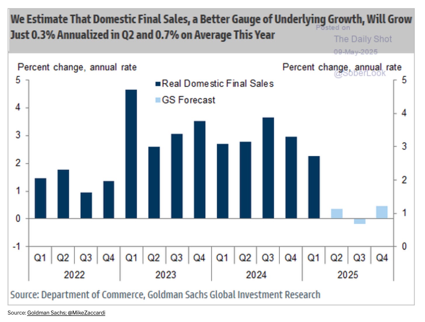 And the outlook for consumption does not look much better. Goldman Sachs expects final sales to pancake.