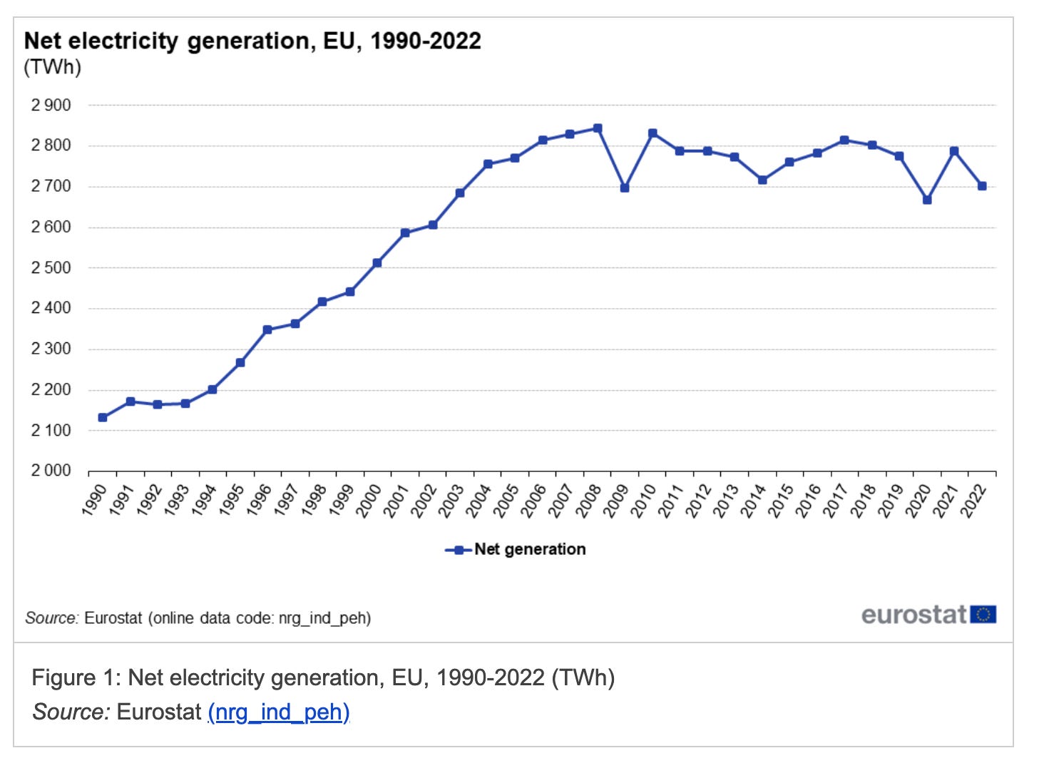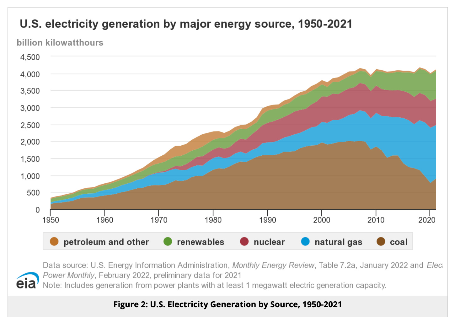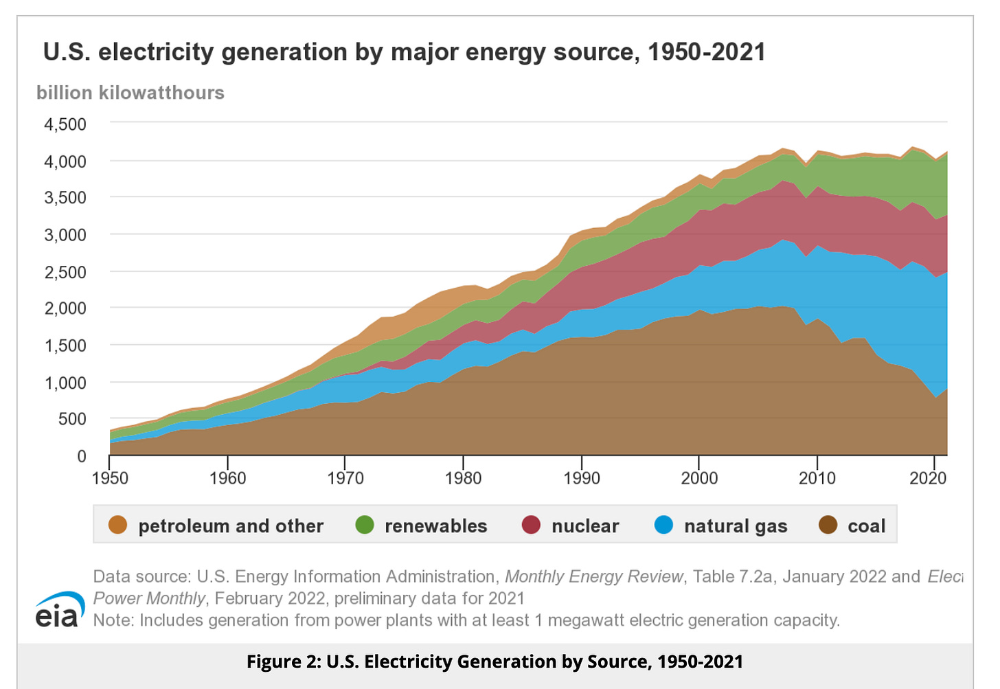 The rate limiting factor is not the composition of new capacity expansion in the US (and in Europe) but the pace. US electricity consumption plateaued in the late 2000s. For two decades, lack-luster demand has provided little incentive for new investment, making it more profitable, instead, to milk existing capacity.