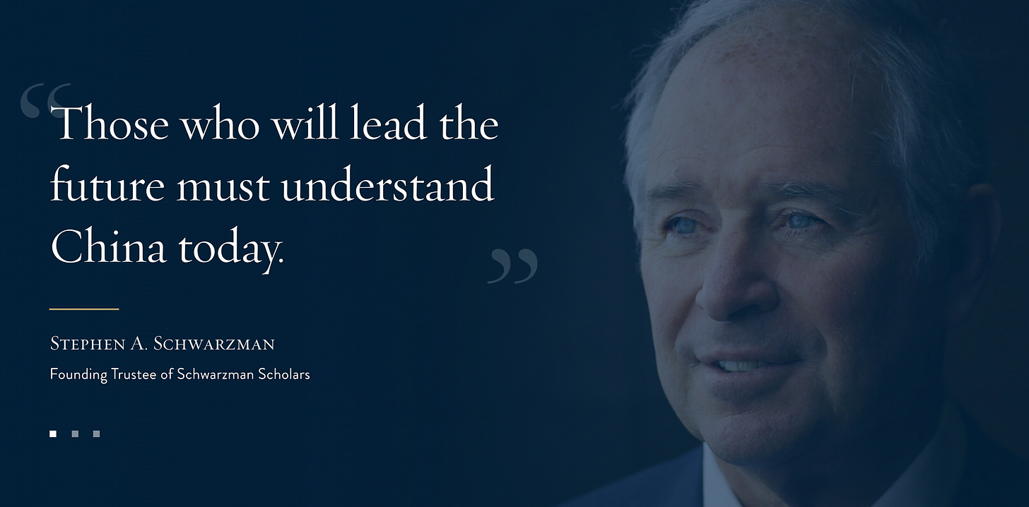 Schwarzman has the means to endow Rhodes-style scholarships at China’s leading university. Both in the US and in China, he has top-level political connections and access to the wealthiest institutions and individuals.