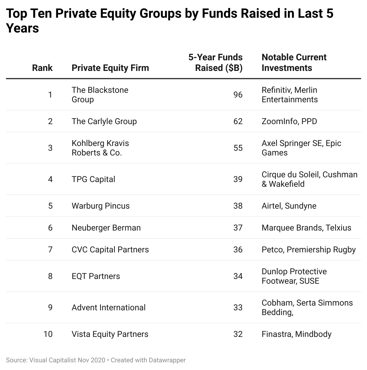 The whale in the private capital pond is Blackstone, with a balance sheet of $648 billion and $96 billion in new funds raised in the last 5 years. Stephen Schwarzman, Blackstone’s boss is a key figure in US finance and politics. As the FT comments, Schwarzman “is no stranger to navigating the choppy waters between Washington and the private sector”.
