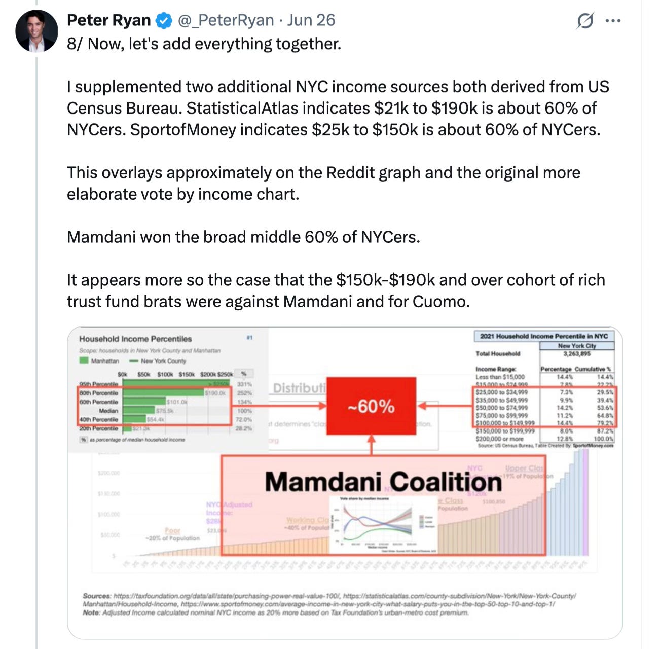 In these terms, Mamdani’s electorate is more or less identical with the “middle class”. But this is a crude first approximation. To really dig into New York City’s sociology and political economy we need a far more precise anatomy of social dynamics.