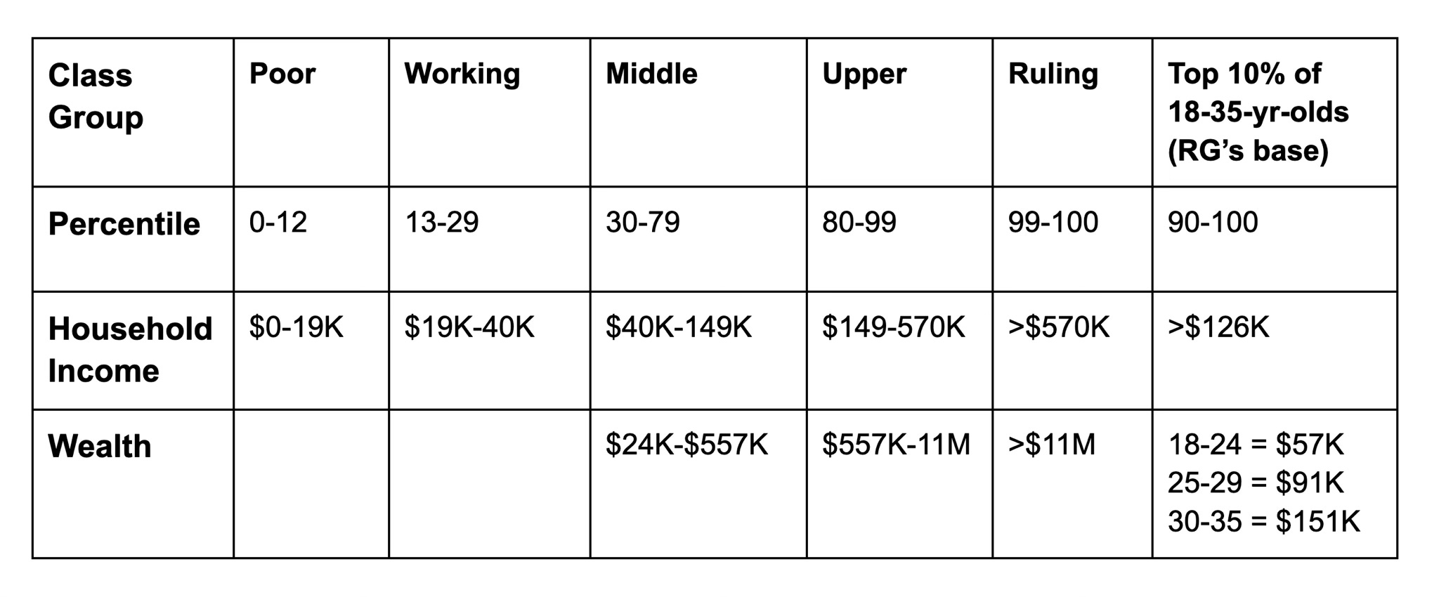 To move from the distribution of income to class categories, Ryan draws on the work of resourcegeneration.org, a rather remarkable organization dedicated to mobilizing the top ten percent of the most affluent American young people, to overcome their own privilege.