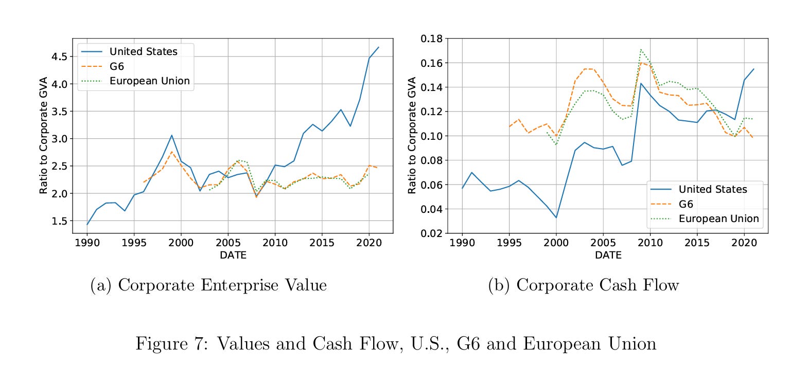In addition to benefitting from enhanced profitability, American equity assets have benefitted from higher valuations. As well, a big share of increased profitability has come from a decline in rates and taxes.