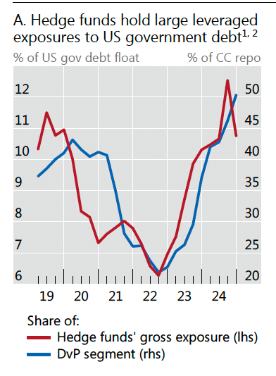 Hedge funds’ relative value strategies are highly vulnerable to adverse shocks in funding, cash or derivative markets, as evidenced by some recent episodes. During the market turmoil of March 2020, for instance, margin calls in Treasury futures markets triggered fire sales, resulting in destabilising deleveraging spirals.26 More recently, a more orderly unwinding of relative value trades – this time tied to interest rate swap markets, where investors had bet on a narrowing in spreads due to potential deregulation – seems to have contributed to the heightened volatility observed in Treasury markets in early April 2025.
