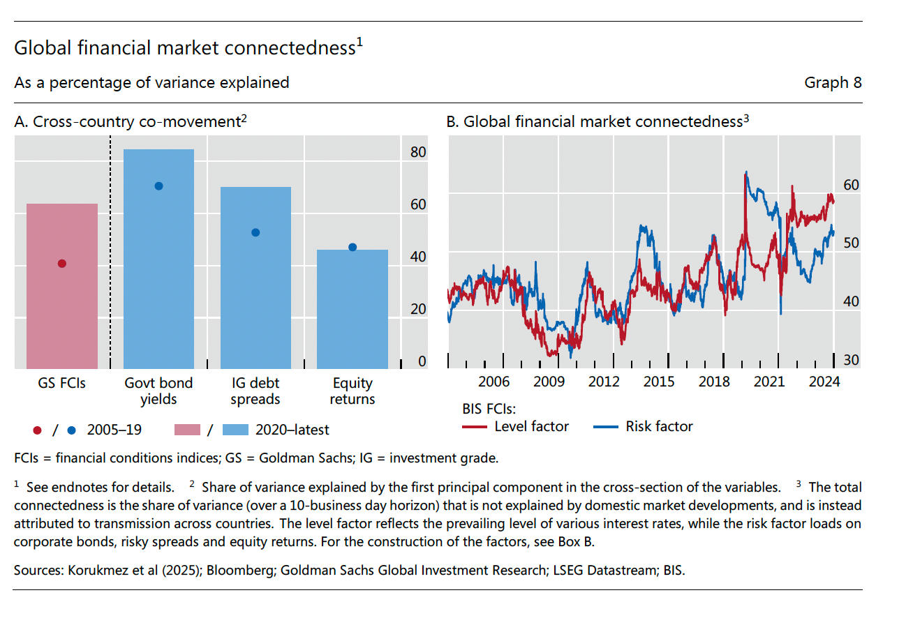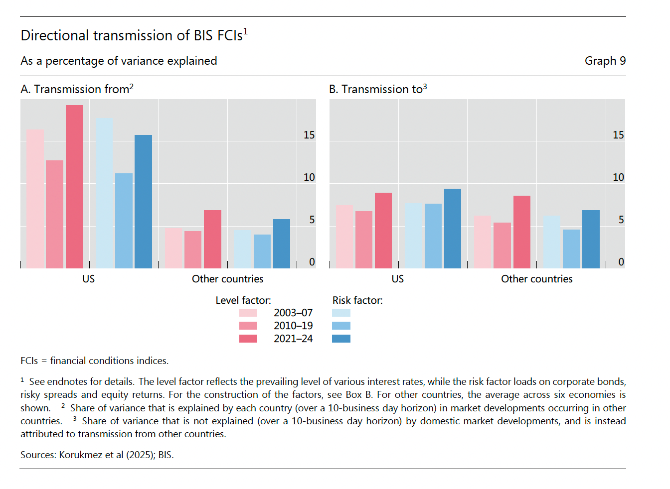 Though shocks transmitted from the US remain substantially more influential than those from any other market, the US too is becoming more susceptible to shocks from abroad. The most notable recent incident was the August 2024 unwinding of yen carry trades which triggered a small but noticeable tightening of US financial conditions.