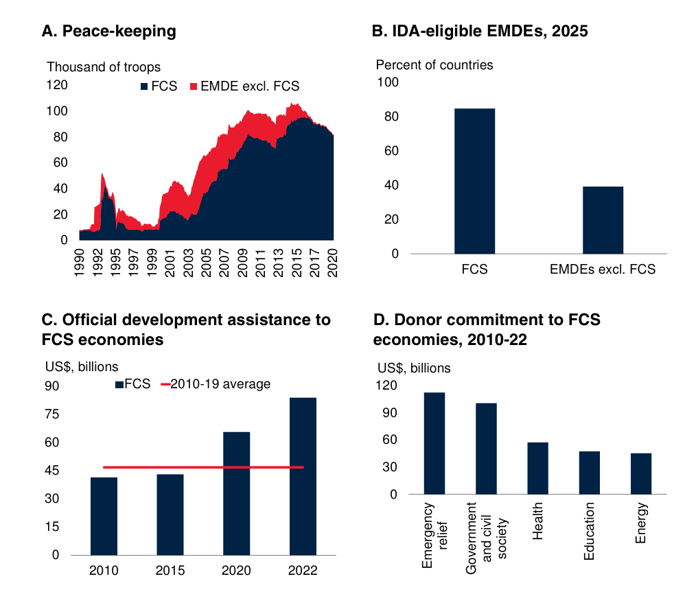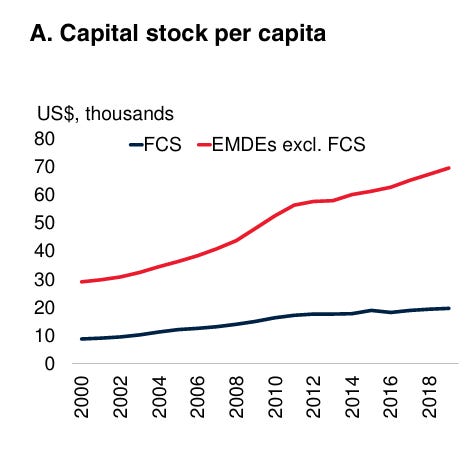 The poorest of all and most vulnerable are those displaced from their homes, often several times over. Of globally displaced people 90 percent are in FCS. Even those who are not displaced lack infrastructure. Capital accumulation is extremely difficult.