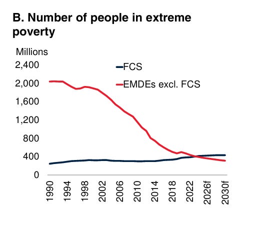 What the World Bank report makes unmistakably clear is the way that such conflicts drive poverty and underdevelopment. Together they form what the World Bank calls “intertwined crises”, or what I’ve dubbed “polycrisis”. Furthermore, over recent decades such conflicts have not just continued, but at the global level have come to define what we mean by absolute poverty.
