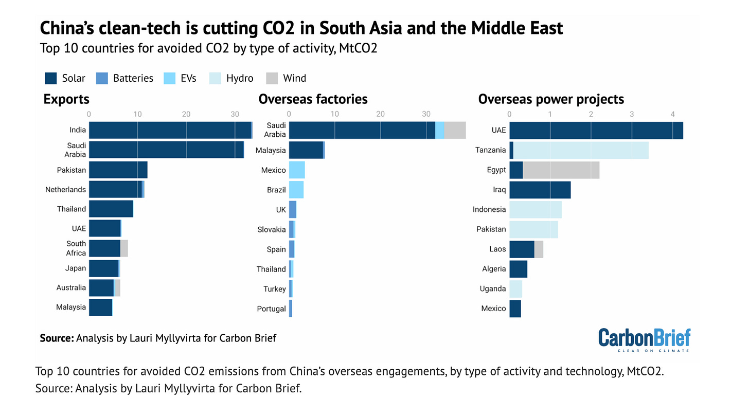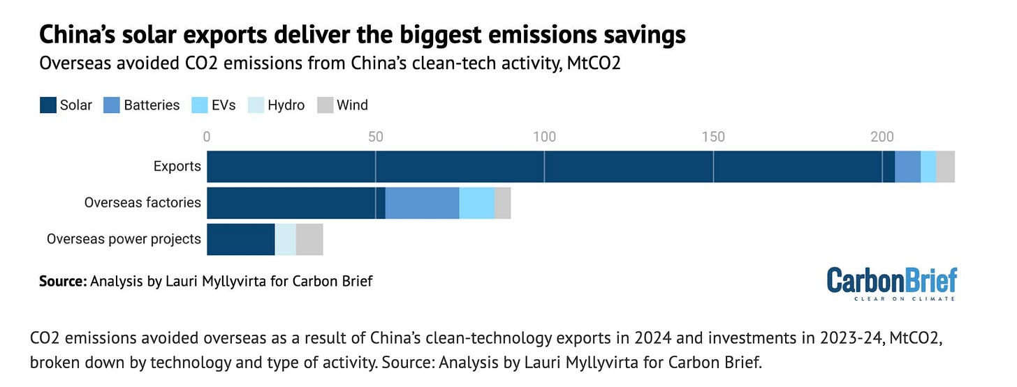 Across Asia China’s solar exports are slashing future carbon emissions. Look at the figures for exports to India, Saudi and Pakistan, weighted in terms of emissions abated, and look at the manufacturing and power projects in Saudi Arabia and the Emirates. If the US won’t power AI data centers with renewables at home, and prefers a steampunk model relying on 19th century furnace-and-turbine technology (Fickling), perhaps Trump’s geopoliticking will allow solar power AI to happen, at least in the desert.