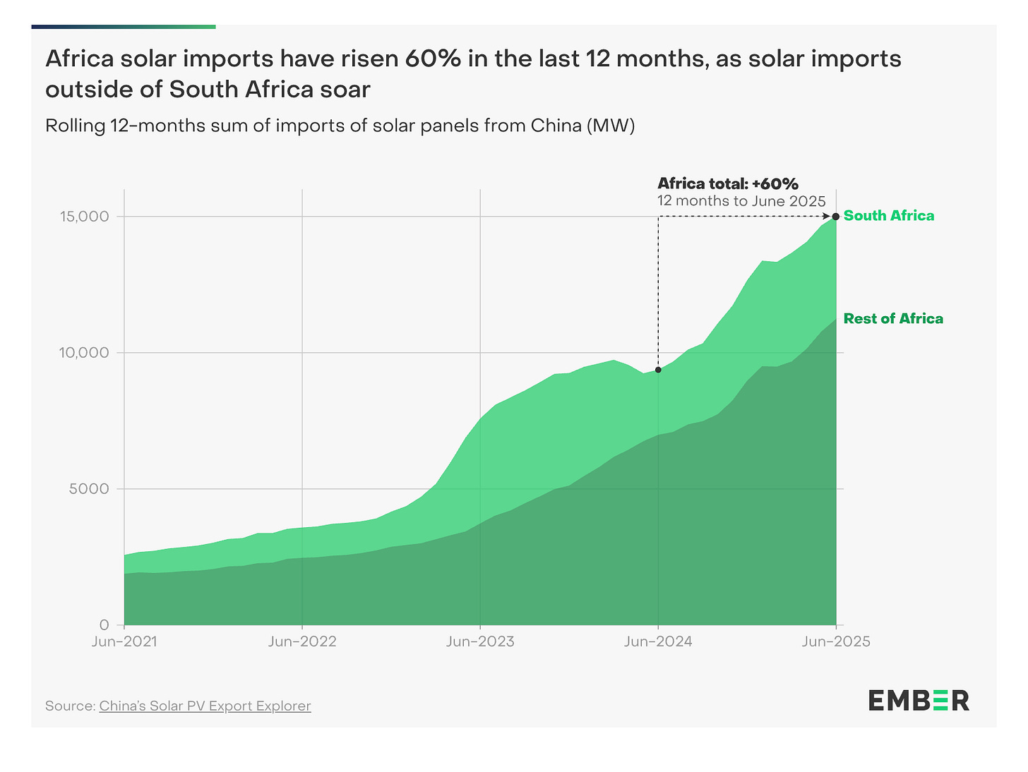At the other end of the scale of electrification and poverty, there is extremely encouraging news of a surge in Chinese solar panel exports to Africa.