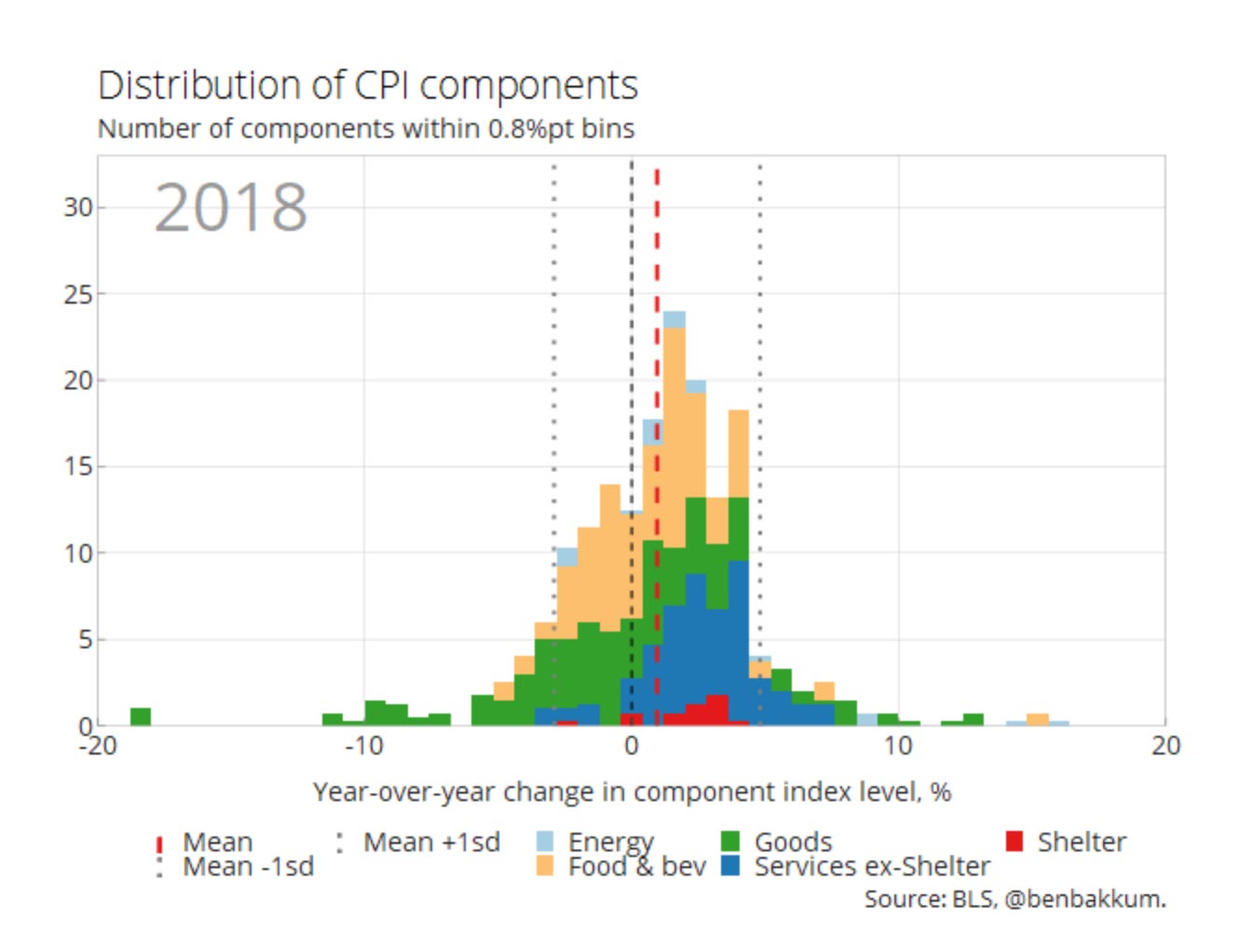 The degree of co-movement or dispersion within commonly-used price indices does not attract as much attention as you might expect. But it is at the heart of our current perplexity.
