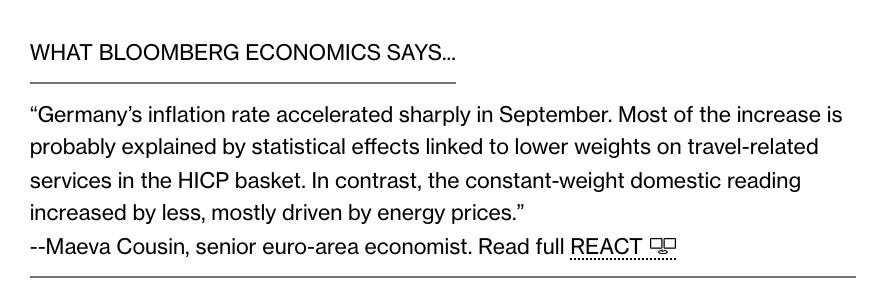 This is one of the effects driving inflation above 4 percent in Germany right now. As Bloomberg explains: