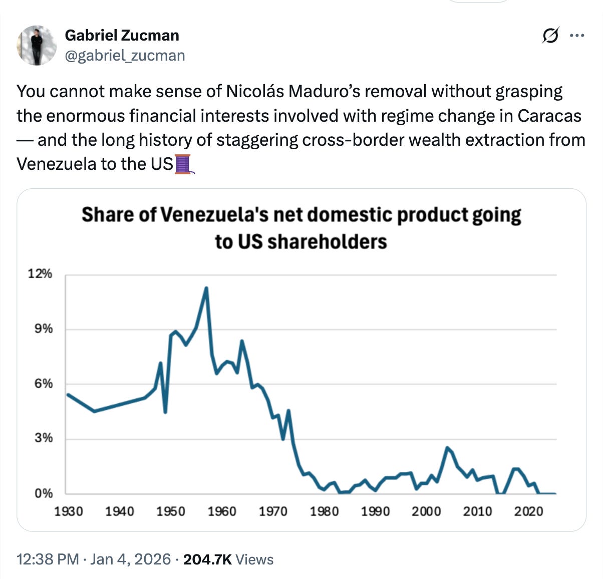For instance: Historical data on oil rents paid by Venezuela under the pre-OPEC oil regime are very interesting. But what conclusions can you possibly draw? I was sorry to see Gabriel Zucman posting in this fashion.