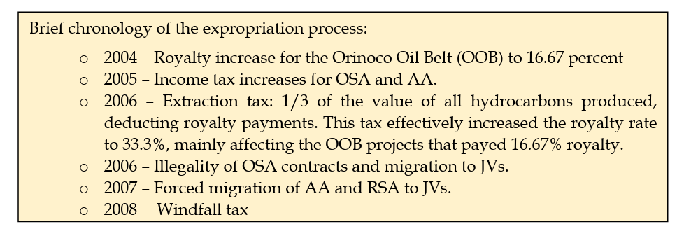 In the mid 2000s Hugo Chavez moved to change the terms of the 1990s deals