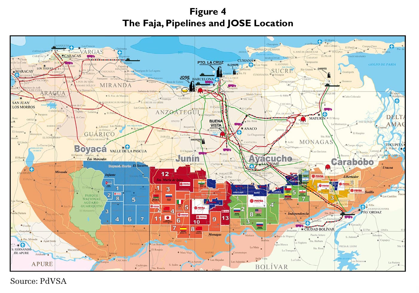 The Orinoco Oil Belt is considered to be the largest hydrocarbon accumulation in the world. It is a massive body of mostly Cenozoic (Miocene) sediments, 650 km X 70 km, that lie on the southern border of the Eastern basin, north of the Orinoco River, Fig. 4. The Belt is estimated to contain about 1.3 trillion barrels of extra-heavy (7-13° API gravity) crude oil with a low average GOR (gas-oil-ratio) of 110 scf/b that together with high viscosities contribute to very low recovery factors. Viscosity at reservoir conditions of the Orinoco’s shallower extra-heavy oils runs up to 5,000 cp, which is syrup-like in viscosity compared to water (1-5 cp) or light (45°API) crudes of 3 cp.