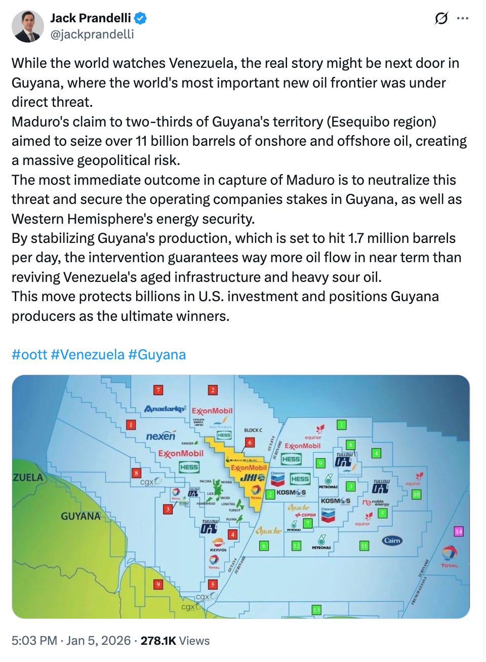In the end it may be Guyana that is the key play. Taking out Maduro removes any threat to the giant new discoveries there.