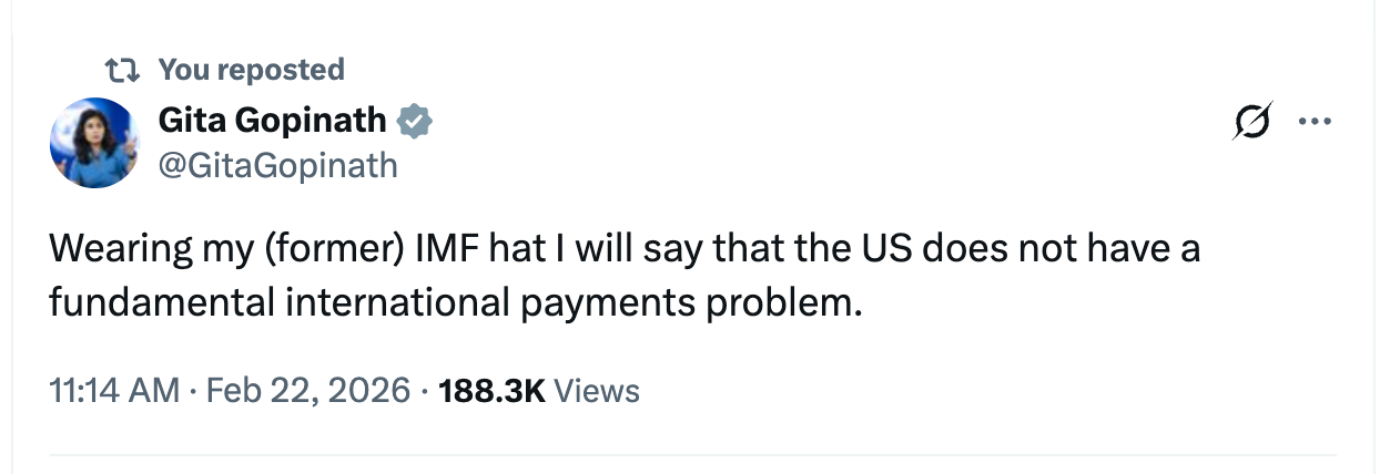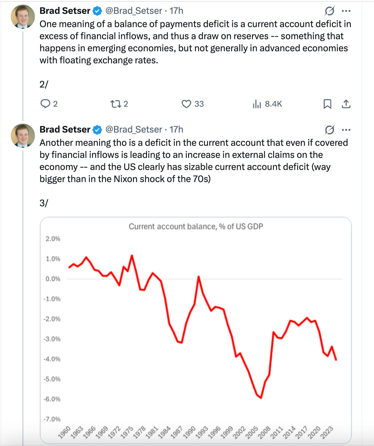 The question he asks in this brilliant thread, is does the US have a “balance of payments deficit” of the kind that would actually warrant action by Trump?