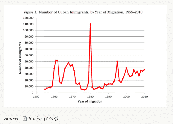 In the hands of Card, the Mariel boatlift became such a moment. The Miami labour market had been absorbing migrants from Latin America and the Caribbean for years. But, Castro’s decision in the spring of 1980 to release the flow of refugees to the United States was unrelated to the state of the Miami labour market.