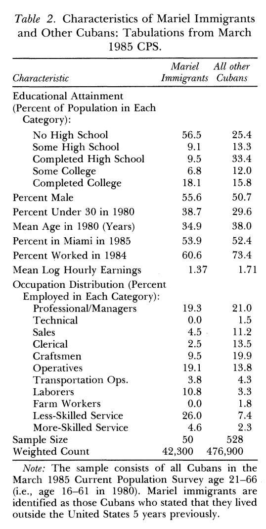 Forensic work by Michael Clemens traces the econometric assessment of the Mariel refugee movement back to their database in labour market surveys conducted in Miami in the 1970s and 1980s. In particular, the argument revolves around the returns for Miami from the March Supplement to the Census Bureau’s Current Population Survey, or CPS. Within those statistical compilations, the original finding by Card was based on returns taken from a population of c. 1200 of whom 185 were low-skilled workers with high school education or less. One might imagine that it was the people depicted in this image: