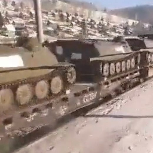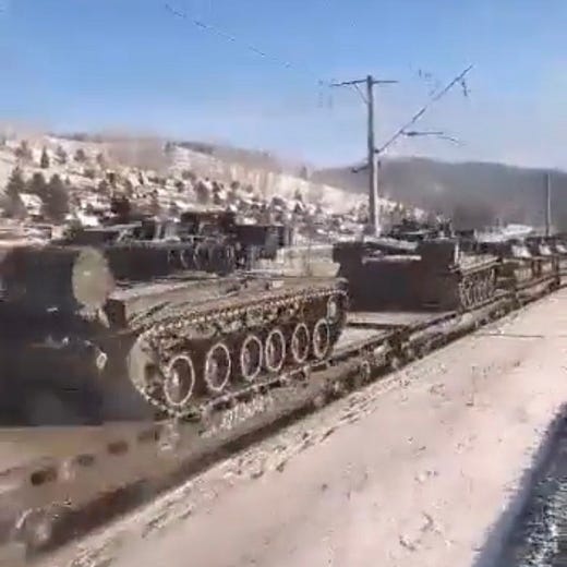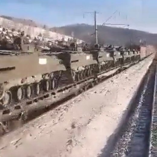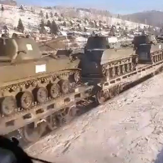 I'd suggest that posts on this topic avoid war nerd openers such as today's, with shots of scrupulously identified Russian armaments moving west. It detracts from your very helpful core ideas regarding the avoidable nature of this crisis. It might be useful to talk more pointedly about just what makes it seem unavoidable to US policy planners. To refer to Kennan's thin theory from his Mr. X memo, doesn't it appear that the US, not Russia, is the wind-up toy, always pressing forward? Does it require containment? We're certainly hearing as much from Russia's Mr. X.