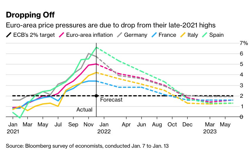 For Europe as a whole, the latest surveys of Eurozone economists suggest a rapid deceleration of inflation in the course of 2022. As Bloomberg reports: “The worst may over for firms and households feeling the pinch of higher prices in the euro area as inflation is fading from a record high.”