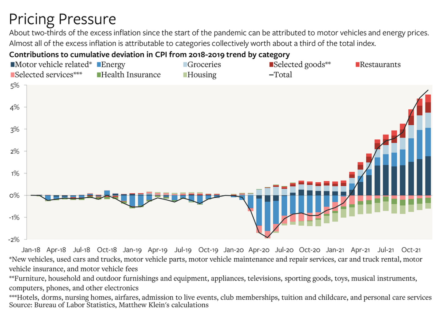 The graph below is key. About two thirds of the deviation of CPI from pre-COVID trend can be attributed to just two categories - motor vehicles and energy prices. Almost all of the excess inflation is attributable to components collectively worth one third of the overall index.