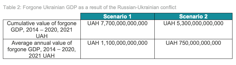 Analysts who have addressed this question come to significant conclusions but in doing so they backhandedly confirm the underlying diagnosis of Ukraine’s developmental failure. In assessing the impact of the Donbass intervention, you have to make assumptions about how Ukraine would have developed without the conflict. Fair-minded analysts offer two benchmarks one in which Ukraine did actually begin to grow and one which simply projected the past and that means long-term stagnation. That implies two rather different assessments of the damage.